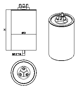 Cn (μF) | Ourput Un 50Hz | Dimension | ESR1.0KHz (mΩ) | Ipeak | Irms 40℃ | Irms 55℃ | Irms 70℃ | Rth ℃/W | Part number | |